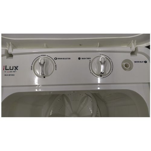 Machine à laver semi-automatique de la marque Ilux, modèle LX-8010GS, avec une capacité de 8 kg. Elle est conçue pour offrir un lavage efficace tout en restant simple et économique.
